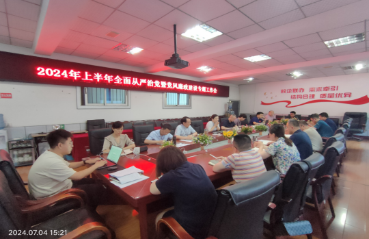 7月4日,四川省资阳师范学校召开2024年上半年全面从严治党暨党风廉政建设专题工作会,贯彻落实全面从严治党工作要求。学校党委委员、中层管理干部、各支部书记参加会议。学校专职党委书记朱晓霞主持会议。