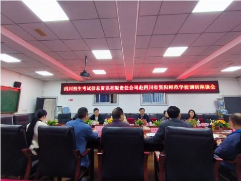 为深化招生考试领域交流协作,共谋教育高质量发展新路径,2025年10月23日,四川招生考试信息咨询有限公司副总经理黄振华率调研组赴四川省资阳师范学校开展专题调研。资阳师范学校副校长朱万彬、教务科科长郭辉、副科长尧兵、招生就业办负责人陈治国及4名教师代表全程参与座谈交流。