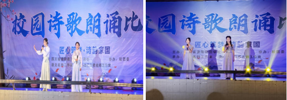 校园歌手大赛中,同学们通过独唱、组合等多种形式,演唱了不同风格的歌曲,用歌声展现青春活力;诗歌朗诵比赛共有21个节目进入决赛,同学们用动人的声音,深情表达了对家国的热爱,赢得了现场师生的好评。