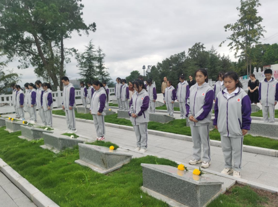 下午14点30分,参加此次活动的全体师生统一着装,从学校步行前往资阳烈士陵园。巍巍青山,滔滔江水。祭奠仪式在庄重的国歌声中开始,站在纪念碑前,全体师生静默肃立、深情默哀,对长眠于此的革命先烈致以无尽哀思和深切缅怀。